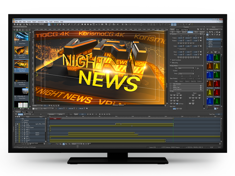 생방송용 실시간 3D 모션 그래픽 저작 및 송출 소프트웨어 입니다. 뉴스/엔터테인먼트 자막 표현 및 기상/스포츠/선거 방송 등의 실시간 데이터의 시각화 표현의 용도로 주로 사용됩니다.