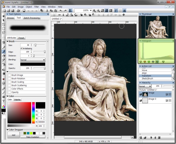 The histogram shows quantity of pixels in image as a graph. The horizontal axis of the graph represents tone and the vertical axis represents quantity. The left side of the horizontal axis represents the dark areas and the right hand side represents pure white areas.